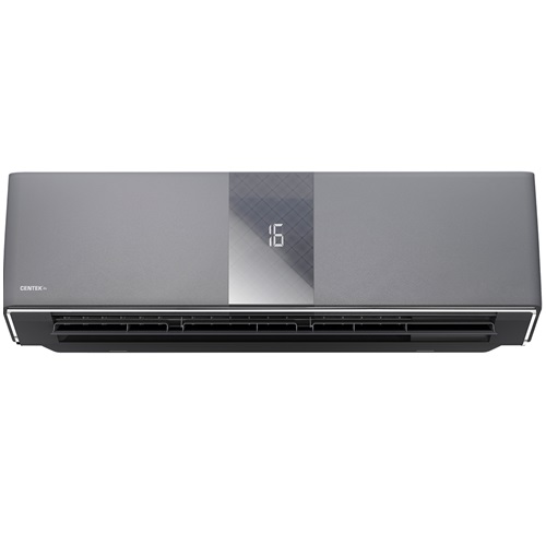 Centek CT-65G18 Carbon Gray — дизайнерский не инверторный On/Off кондиционер, выполненный в сером цвете с матовой лицевой поверхностью и вертикальной вставкой цвета «Carbon» в центре. Модель предназначена для эффективного охлаждения и обогрева помещений до 60 м².