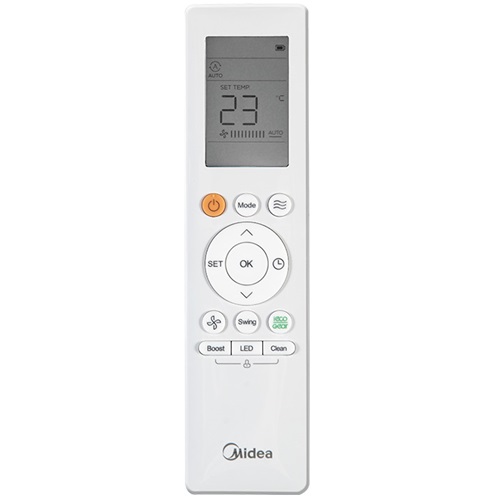 Управление кондиционером осуществляется со стильного пульта дистанционного управления с большим дисплеем и программируемыми кнопками с защитой от случайного нажатия. Благодаря встроенному в пульт датчику кондиционер ориентируется при работе на температуру воздуха в зоне нахождения пульта. Дополнительно сплит-система Midea Breezeless FULL DC Inverter MSFA2W-09N8D6-I/MSFA1-09N8D6-O комплектуется Wi-Fi модулем с доступом к приложению DAICHI Comfort, позволяющему управлять температурой в помещении удаленно или через голосовые помощники «Алиса», «Маруся» и «Салют».