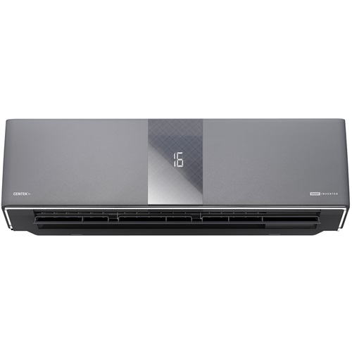 Centek CT-65Z18 Carbon Gray Inverter — дизайнерский инверторный кондиционер, выполненный в сером цвете с матовой лицевой поверхностью и вертикальной вставкой цвета «Carbon» в центре. Модель предназначена для эффективного охлаждения и обогрева помещений до 50 м².