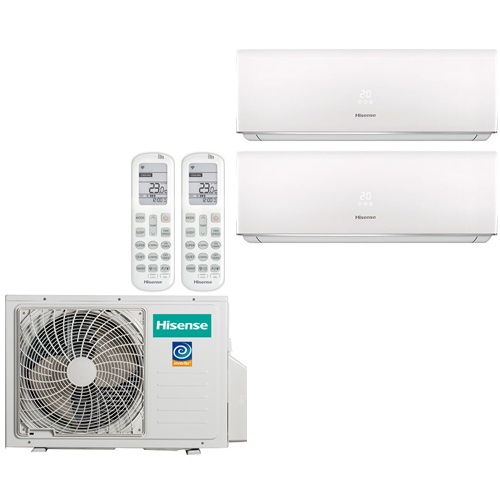 Мульти сплит система Hisense AMS-07UW4RVEDB00Hх2/AMW2-14U4RGC — кондиционер с инвертором, предназначенный для охлаждения и обогрева двух комнат, площади которых по 20 м². Комбинация является популярной, и рекомендована производителем. Мульти система способна работать как с двумя включенными блоками, так и с одним.