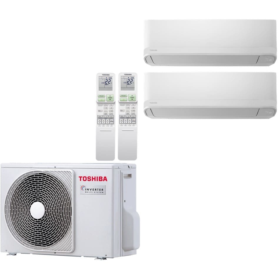 Мульти сплит-система на 2 комнаты Toshiba SEIYA RAS-B07CKVGх2/RAS-2M14G3AVG-E — это инверторный кондиционер с одним внешним и 2-мя внутренними блоками, который обеспечивает оптимальный микроклимат в 2-х помещениях площадью 20 и 20 м2.