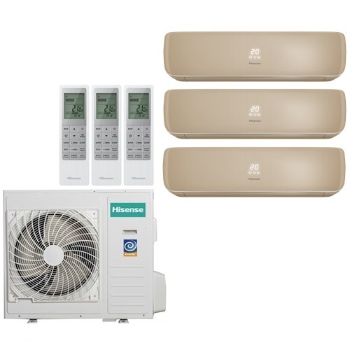 Мульти сплит Hisense AMS-09UW4RVETG00(C)х2+AMS-12UW4RVETG00(C)/AMW3-24U4RJC — кондиционер с инвертором, предназначенный для охлаждения и обогрева трех комнат, площади которых 20, 20 и 30 м². Комбинация является популярной, и рекомендована производителем. Мульти система способна работать с тремя включенными внутренними блоками, с двумя и даже с одним.
