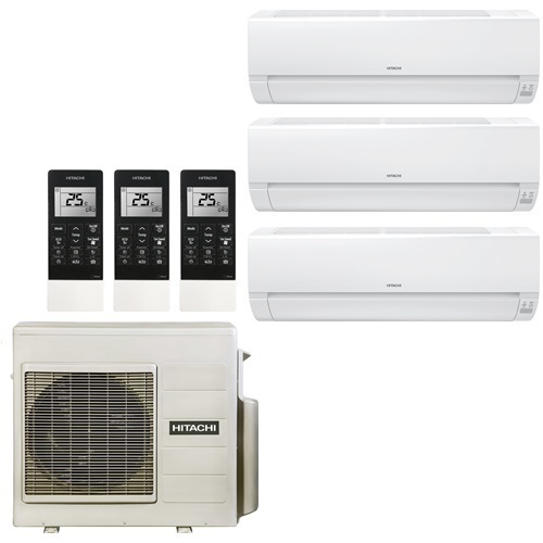 Мульти сплит система Hitachi RAK-18REFх2+RAK-35REF/RAM-53NE3F — инверторный кондиционер с треся внутренними блоками и одним наружным. Модель предназначена для охлаждения и обогрева трех комнат площадью 15, 15 и 25 м². Комбинация очень популярна и рекомендована производителем. Система способна работать как с тремя включенными блоками, так и с одним или двумя.