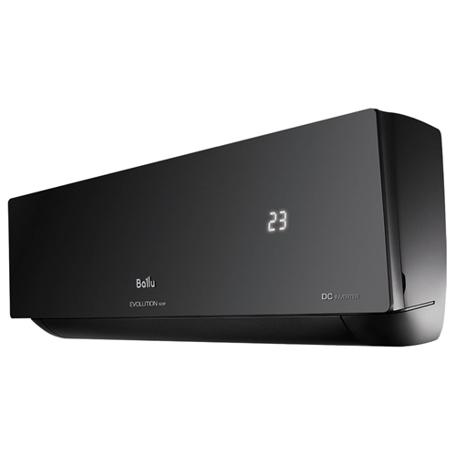 Внутренний блок Ballu серии Platinum Evolution – это черного цвета, матовый корпус, с информативным LED дисплеем «Mirage» в правой части, на который выводится установленная температура и режим работы. Функция самоочистки — предполагает удаление пыли с теплообменника и осушение воды, находящейся внутри испарителя, что исключает образование плесени и появление неприятного запаха.